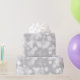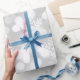 Elegant pattern of white snowflakes and sparkles on a light grey background.