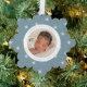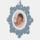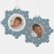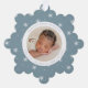 Celebrate your baby's first Christmas with friends and family with our Elegant Ice Blue and White Snowflake baby's first Christmas ornament card. The front of the card displays your baby's photo encircled by a white frame with a light winter blue and white snowflake patterned background. Personalise the front of the snowflake ornament card with your baby's name and birth stats in light blue lettering. The Christmas birth announcement ornament card reverses to display an additional photo.