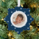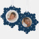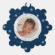 Celebrate your baby's first Christmas with friends and family with our Elegant Navy and White Snowflake baby's first Christmas ornament card. The front of the card displays your baby's photo encircled by a white frame with a navy and white snowflake patterned background. Personalise the front of the snowflake ornament card with your baby's name and birth stats in navy lettering. The Christmas birth announcement ornament card reverses to display an additional photo.