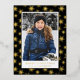 Share holiday cheer with this elegant foil Christmas postcard featuring your vertical photo framed by shimmering gold foil snowflakes on a black background. The festive greeting “Merry Christmas” is displayed in gold foil or customise it to your preferred holiday message. Personalise the front with your family name and year. The back of the postcard includes space for your return address and a personal message, making it both stylish and convenient for sending festive greetings.
