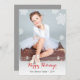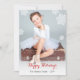 This elegant and whimsical holiday photo card features big and small white snowflakes floating around and the words "Happy Holidays" with the family name and a photo in the background. This delicate and modern card will send greetings to family and friends in style during the winter holiday season.