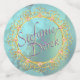 An elegant soft teal bubbled matching wedding or engagement party confetti with a gold filigree type design. Customise with your bride and grooms first name. Designed by Robin D. Cox.