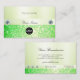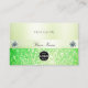 Make a lasting impression with this elegant and quality business card design featuring a luminous sparkling grass green glitter effect print with glamourous diamonds graphics and a shimmery pastel green gradient background.