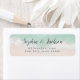 Romantic coastal themed return address label features abstract beautiful turquoise watercolor sparkling ocean wave and beach background, toped with stylish script name and elegant font address, modern and simple, great for sand beach wedding, tropical destination wedding, coastal ocean themed wedding.
