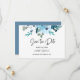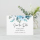 Elegant spring dusty blue white floral wedding save the date. Celebrate your love with this customisable spring wedding suite, featuring a timeless dusty blue and white floral design. Delicate watercolor florals and soft hues create a romantic and sophisticated look, perfect for a spring or garden wedding. Set the tone for your special day with a beautifully designed floral wedding suite that reflects your style.