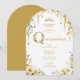 Elegant Spring Floral Beige Tones Quinceañera Party Invitation Cards Design with Princess Tiara.