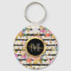 Elegant spring flowers and stripes design key ring