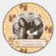 Elegant squirrel and oak leaf damask print in yellow and brown with 3D look button and tag Thanksgiving photo sticker.