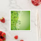Elegant St. Patrick's Day napkins with lots of shamrocks and white and green scroll work on a green gradient background.