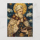 The design showcases the figure with a glowing golden halo, a calm expression, and an open sacred book — symbolising peace, reflection, and devotion. Perfect for religious holidays, confirmations, baptisms, sympathy notes, or spiritual encouragement. Whether you’re a lover of sacred art, Gothic architecture, or classical European iconography, this postcard adds elegance and depth to any collection.