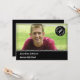 This elegant and timeless graduation announcement is great to celebrate the graduation of a high school or college student. It features a round stamp on the top right corner and a solid colour bar on the bottom with the grad's information. The back side includes information for a graduation party.