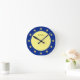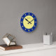 Modern elegant stars on blue and yellow Wall Clock. Sunrise text can be personalised.
