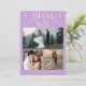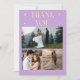 Whimsical and elegant wedding thank you card featuring 3 wedding photos with a typography text that says "thank you" with stars. Message on the back of the card is editable and another picture can be added as well. This 2-sided thank you card is so timelessly stylish. The background is lemon yellow and wisteria
