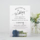These wedding programs are elegant and tasteful, while still being budget friendly. The design features a single long stemmed dusty steel blue grey coloured rose lying on its side, reflecting in a pool of water with waves and ripples. The typography features lacy black script calligraphy, and there is room for details on the ceremony, the bridal party, and a short thank you.