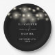 This elegant black and white wedding paper plate, featuring pretty string lights, can be personalized with your information in chic typography. Designed by Thisisnotme©