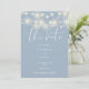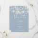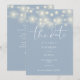 This elegant dusty blue save-the-date invitation, featuring pretty string lights, can be personalised with your information in chic typography with your wedding website QR code and details on the reverse. Designed by Thisisnotme©