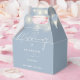 This elegant dusty blue wedding favor box, featuring pretty string lights, can be personalized with your information in chic typography. Designed by Thisisnotme©