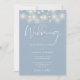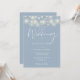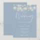 This elegant script dusty blue wedding invitation, featuring pretty string lights, can be personalized with your information in chic typography. Designed by Thisisnotme©