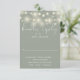 This elegant sage green wedding rsvp card, featuring pretty string lights, can be personalized with your information in chic typography. Designed by Thisisnotme©