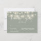 This elegant sage green wedding rsvp card, featuring pretty string lights, can be personalized with your information in chic typography. Designed by Thisisnotme©