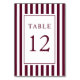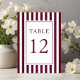 Elegant Striped Burgundy Wedding Table Number