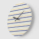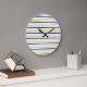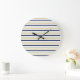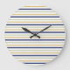 Bring timeless elegance to your home with this stylish striped clock. Featuring a classic stripe pattern in hues of navy blue, gold, and white, this clock is perfect for adding a touch of sophistication to any room. The minimalistic design ensures it complements various decor styles, making it a versatile addition to your space.