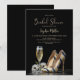 Invite your friends and family to attend your bridal shower with this elegant invitation featuring black, gold and white striped high heel shoes and a glass of champagne. You can effortlessly add all the necessary details to the customizable text. Choose from various paper types and corner styles to make your invitations unique. Additionally, you have the option to download the invitation if you prefer a digital format.