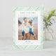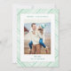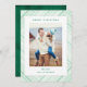 Elegant, simple stripes in seasonal shades of mint and evergreen surround a family photo with personalised holiday greeting and name.
