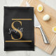 Elegant Stylish Black Gold Monogram Script Name Tea Towel