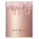 This pretty notebook design features faux pink & copper rose gold dripping glitter metallic texture and elegant calligraphy font.