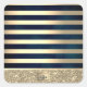 Elegant Stylish Gold Stripes Glitter,Navy Blue Square Sticker