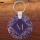 Elegant Stylish Purple Gold Leaves Monogram Key Ring