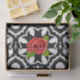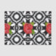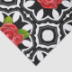 Stylish modern tissue paper design featuring a seamless mosaic pattern made of geometric shapes in black and white and decorated with red roses.