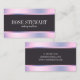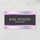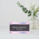 Modern business card design featuring faux holographic metallic texture, dark purple stripe and elegant calligraphy font.
