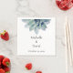 Elegant greenery Wedding Reception cocktail napkin, with a floral design. Set on a white background, a peeking green succulent image adds a botanical touch. Black typography lettering can be customised with your own text. Great for adding an lovely touch to your wedding celebration.