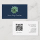 Interior Designer QR code navy blue business card, with a desert succulent design and elegant typography. With customizable text, you add your own information. You also add your website to the QR code field for more promotion. Great for adding a modern botanical touch to your interior design or professional stylist business.