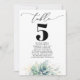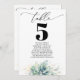Modern succulents greenery wedding table number seating chart cards with the guest names.