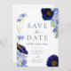 Beautiful modern hand painted wildflower watercolor wedding save the date invitation with summer florals including meadow cornflowers, poppies, cosmos and forget me nots in blush blue, dusty blue, navy blue, cornflower blue, purple, green and yellow hues wedding save the date card. Easy to use template with modern romantic typography script which includes the bride and grooms monogram initials. Perfect for a unique floral botanical navy blue themed summer or spring wedding. Unique original artwork by artist Catherine Sweetman