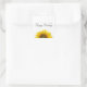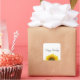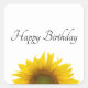 Happy Birthday floral round sticker, with a peeking yellow sunflower image and a white background. With elegant black script lettering, you can add your own text. A classic addition to your birthday cards and favours.
