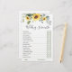 Elegant Sunflowers Eucalyptus Bridal Shower Game