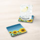 Elegant sunflowers on sky blue shades background Coaster. Ideal for nature lovers. Sunflowers are believed to bring joy!