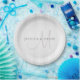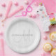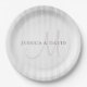 Elegant Surname Monogram & Thin Grey Stripes Paper Plate
