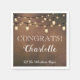 Elegant cocoa brown surprise retirement party napkins, featuring shimmering string lights and a combination of script and open face typography on a brown ombre background graduating from lighter blue in the centre to darker blue on the outer edges for a soft shimmering atmospheric effect. Perfect for men's or women's retirement celebration.