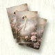 1 of 2 IMAGES THAT COORDINATE, RIGHT SIDE DOOR SWAN 1A. Exquisitely painted swan with pale blush pink waterlilies on a pond with a sky that has an ethereal glow. Crackle texture softly enhanced by script handwriting ephemera that is layered on top. MSP0123-01A
