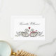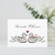 Add a touch of romantic enchantment to your wedding day with these beautiful love bird place cards. The design showcases a pair of intricately drawn swans, nestled together with a symbolic red heart and flowing ribbons. Accented with whimsical greenery, these cards are sure to impress your guests and add a memorable detail to your table settings. They are ideal for a classic or garden-themed wedding, creating an atmosphere of love and sophistication.