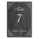 A lovely and simply elegant swirl frame in white on a vintage chalkboard charcoal black background, is ready to customise with your own names. You must make a separate table number card for each number that you need. Matching items are available in my Zazzle store.