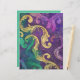 This versatile scrapbook paper features a vibrant and intricate design that is perfect for a variety of projects, especially those with a Mardi Gras theme. The front side of the paper showcases a rich tapestry of swirls in shades of gold, green, purple, and magenta, set against a deep purple background. The ornate flourishes and delicate dots create a sense of movement and festivity, reminiscent of the lively and colourful atmosphere of Mardi Gras celebrations. This paper is ideal for crafters, scrapbookers, and DIY enthusiasts looking to add a touch of elegance and festivity to their projects. It can be used for making greeting cards, party invitations, decorative accents, or any other creative endeavour that calls for a bold and celebratory design. The reverse side of the paper features a solid sea green colour, providing a complementary backdrop that enhances the overall aesthetic and offers versatility for any craft.