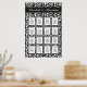 Elegant black and white wedding or annivesary dinner party seating chart. Easily customize the layout with the names of your guests. You can put beween 6 and 9 at each table, meaning that this chart can help you to seat between 96 and 144 people. The black background color is customizable. You can make this design perfectly match the color scheme of your event. Why not frame one as a souvenir? We've picked a standard size for reasonabily priced framing.