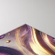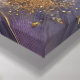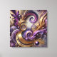 Intricate swirls of purple and gold flow across the canvas creating a sense of movement and elegance. The abstract forms give the impression of luxurious feathers intertwined with metallic hues.