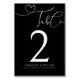 Elegant Table Number Modern Script Black Wedding. Gorgeous design featuring couple’s names and wedding date with a decorative ’table’ script with love heart accent. White text on black. Customise with your table number and wedding details. All fonts, text, colours are customisable. We invite you to visit our Zazzle store, Austen & Grace, to view the full wedding suite, matching products and more. Please contact us if you require any assistance.